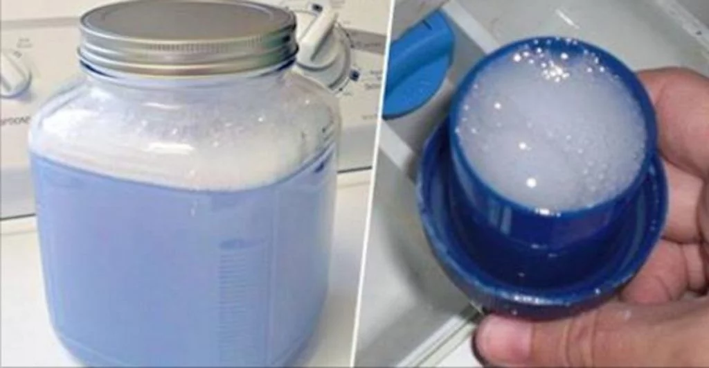 Prendiamo un recipiente di plastica da 3 o 5 litri, mescoliamo acqua, aceto di mele e bicarbonato di sodio, facciamo riposare per qualche minuto e poi versiamo in un contenitore di vetro che sarà il nostro contenitore per il detersivo.