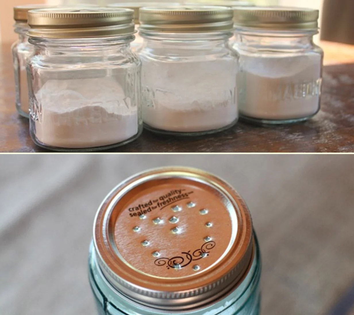 Tutto ciò di cui hai bisogno è un barattolo con coperchio in metallo. Riempire un quarto con il bicarbonato di sodio e aggiungere 8 gocce di olio essenziale (di qualsiasi tipo). Metti il coperchio e mescola bene gli ingredienti. Usando un chiodo, fai un buco nel coperchio. Metti questo contenitore ovunque nella stanza. Quando il profumo scompare, ripetere questo processo.