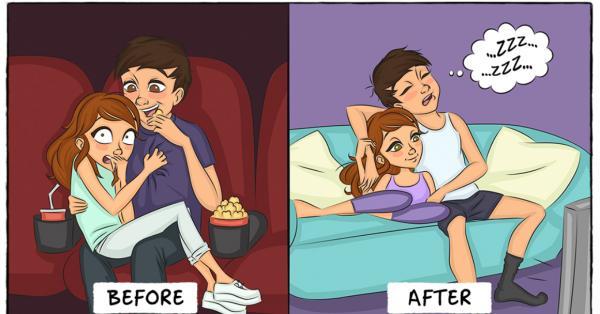 Da fidanzati ogni occasione è buona per baci e abbracci, anche durante un film, mentre dopo il matrimonio cosa fa lui? Si addormenta.