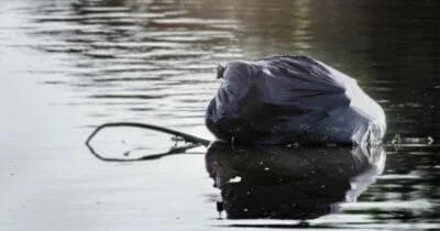 Un suono proveniente da un vecchio sacco nero che galleggiava sull'acqua.