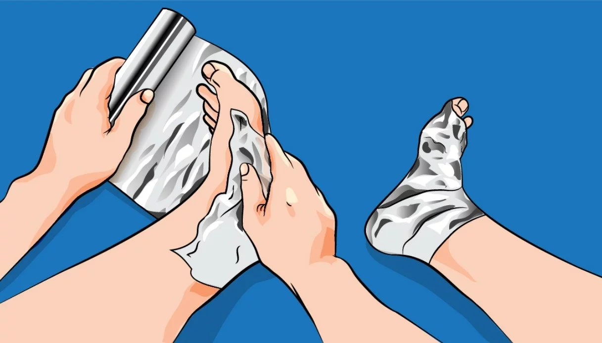 Si pensa che il foglio di alluminio possa ridurre sintomi dell’influenza. Avvolgi piedi in un foglio e rimuovilo dopo un’ora. Lascio un po’ respirare i piedi ed esegui la stessa procedura dopo un paio di ore.