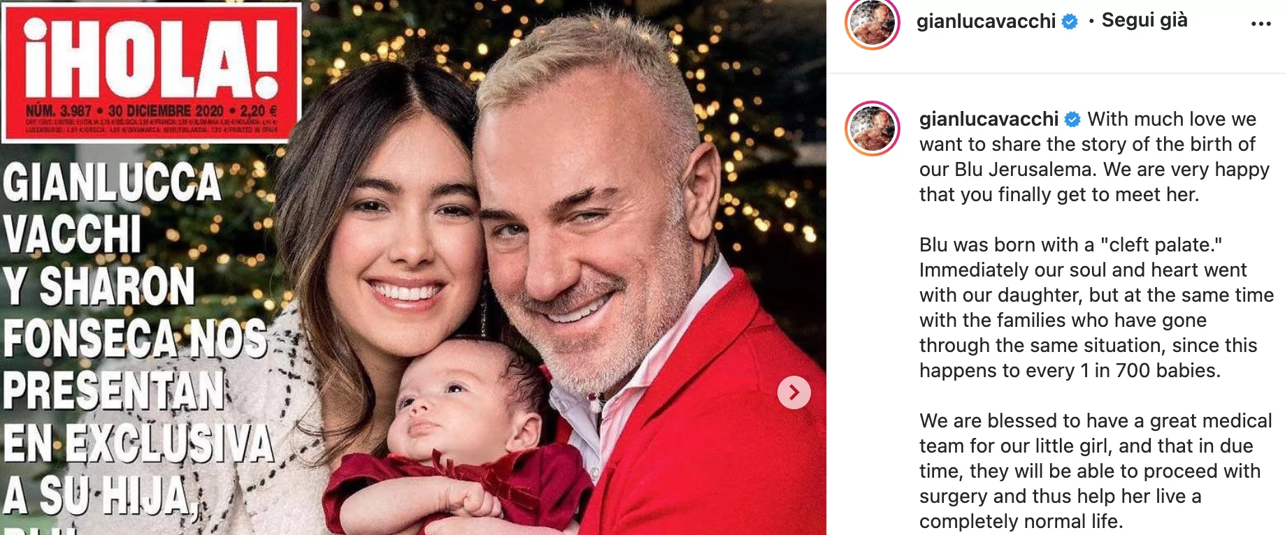 Ha voluto finalmente annunciare a tutti la sua immensa gioia per la nascita della figlia Blu Jerusalema ma ha anche espresso la sua preoccupazione per un piccolo problema che affligge la piccola, una malformazione al palato e a quanto pare dovrà per questo motivo sottoporsi ad intervento chirurgico.