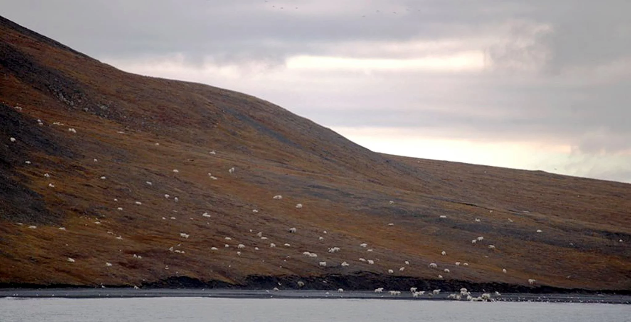 La verità? Centinaia di orsi polari si erano radunati sulla costa artica per prelevare una balena spiaggiata morta.