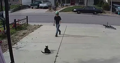 Quando un ragazzo un giorno si avvicinò al piccolo gatto per strada, non si voltò, ma invece andò dritto verso di lui. Tutto è stato catturato in video che sta facendo il giro del web.