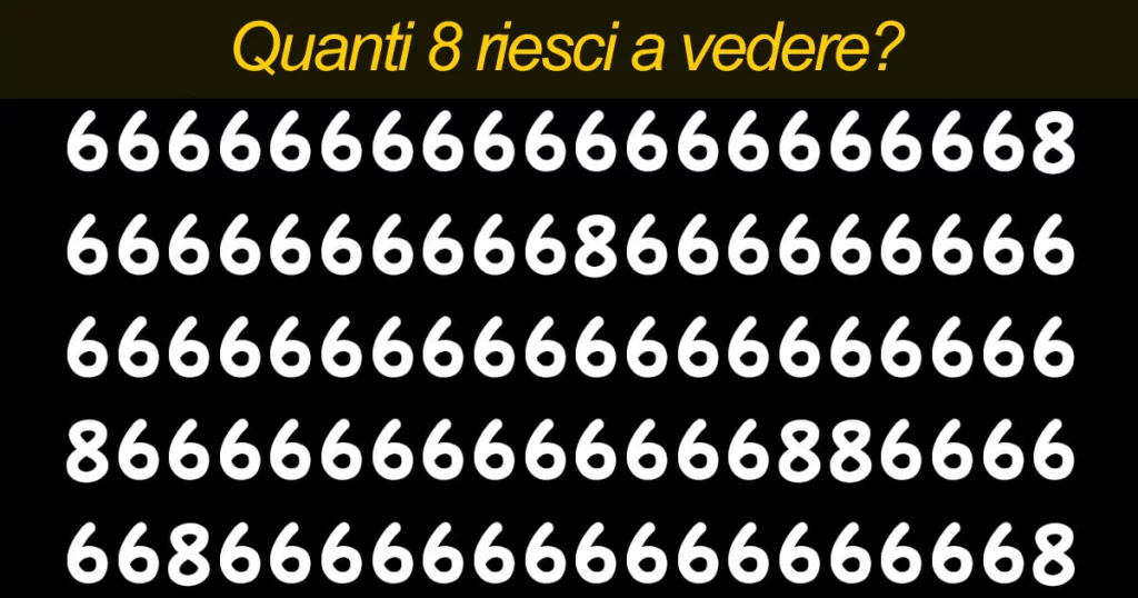 Questa immagine è piena di più numeri 6 ma ci sono anche degli 8 nascosti. Riesci a capire quante volte appare il numero 8? Oh, e hai solo 10 secondi - è una grande sfida!