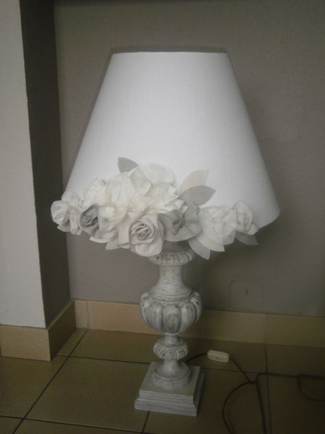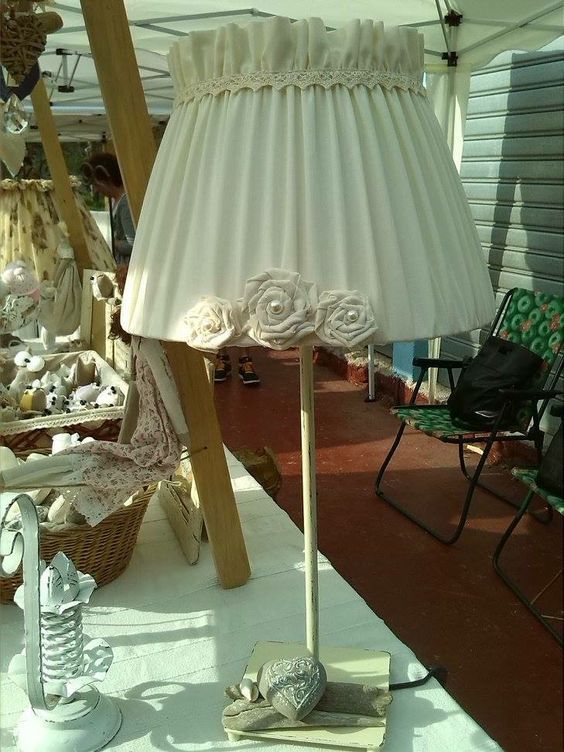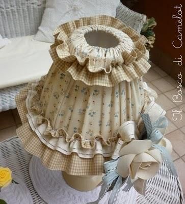 Optate per tessuti a fiorellini, a quadretti, fiocchi, nastri, fiori, applicazioni varie, insomma guardate le foto e lasciatevi ispirare, non sarà difficile trovare lo stile che più si addice alla vostra casa e trasformare il vostro vecchio lume.
