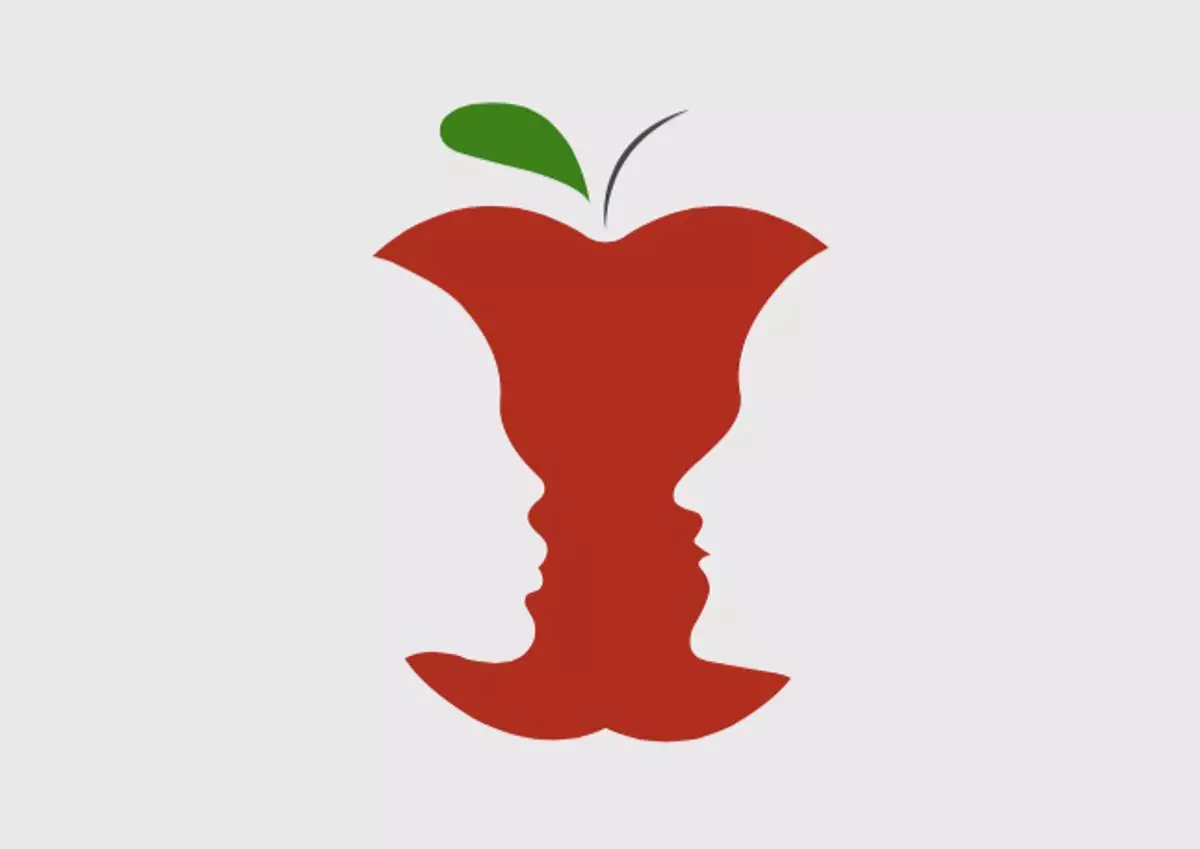 Nella foto che vi proponiamo oggi si vedono: una mela, un profilo maschile, uno femminile o due volti insieme, quale ti ha colpito a prima vista?