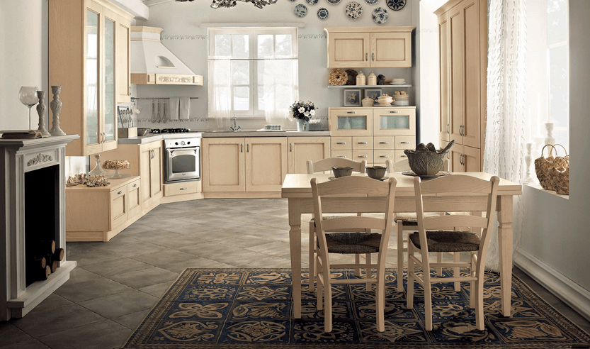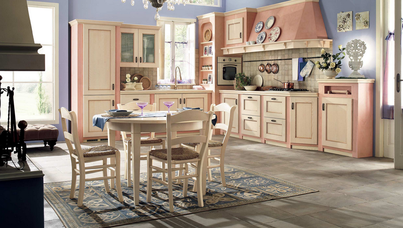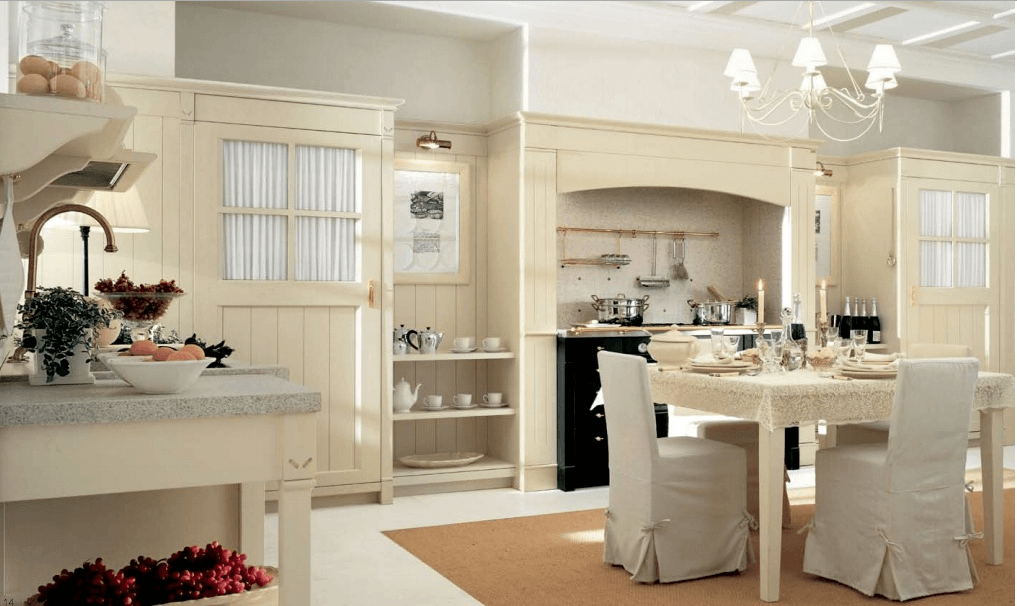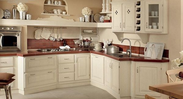 - Importante è la scelta dei colori e materiali: non è affatto secondaria la scelta dei colori se si vuole avere una cucina in questo stile shabby provenzale, il colore principale è ovviamente il bianco in tutte le sue gradazioni e tonalità, da abbinare ai colori pastello come grigio chiaro, beige, verde salvia, tortora o lilla lavanda. I materiali devono essere il più possibile naturali: legno, pietra e cotto per le superfici, abbinateli a cotone e lino per i tessuti.