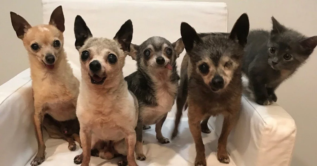 Quando la padrona di 4 Chihuahua di nome Julie, trovò una gattina per le strade di Los Angeles, voleva portarlo a casa, ma allo stesso tempo, temeva che i suoi 4 animali domestici potessero reagire in maniera sbagliata, ma come vedrai, i cani anziani erano assolutamente felicissimi di avere tra loro un nuovo membro in famiglia.